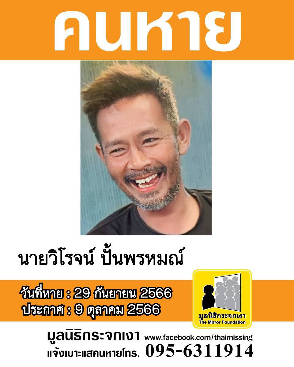ผู้ใดพบเห็นโปรดแจ้งมูลนิธิกระจกเงา โทร. 095 631 1914