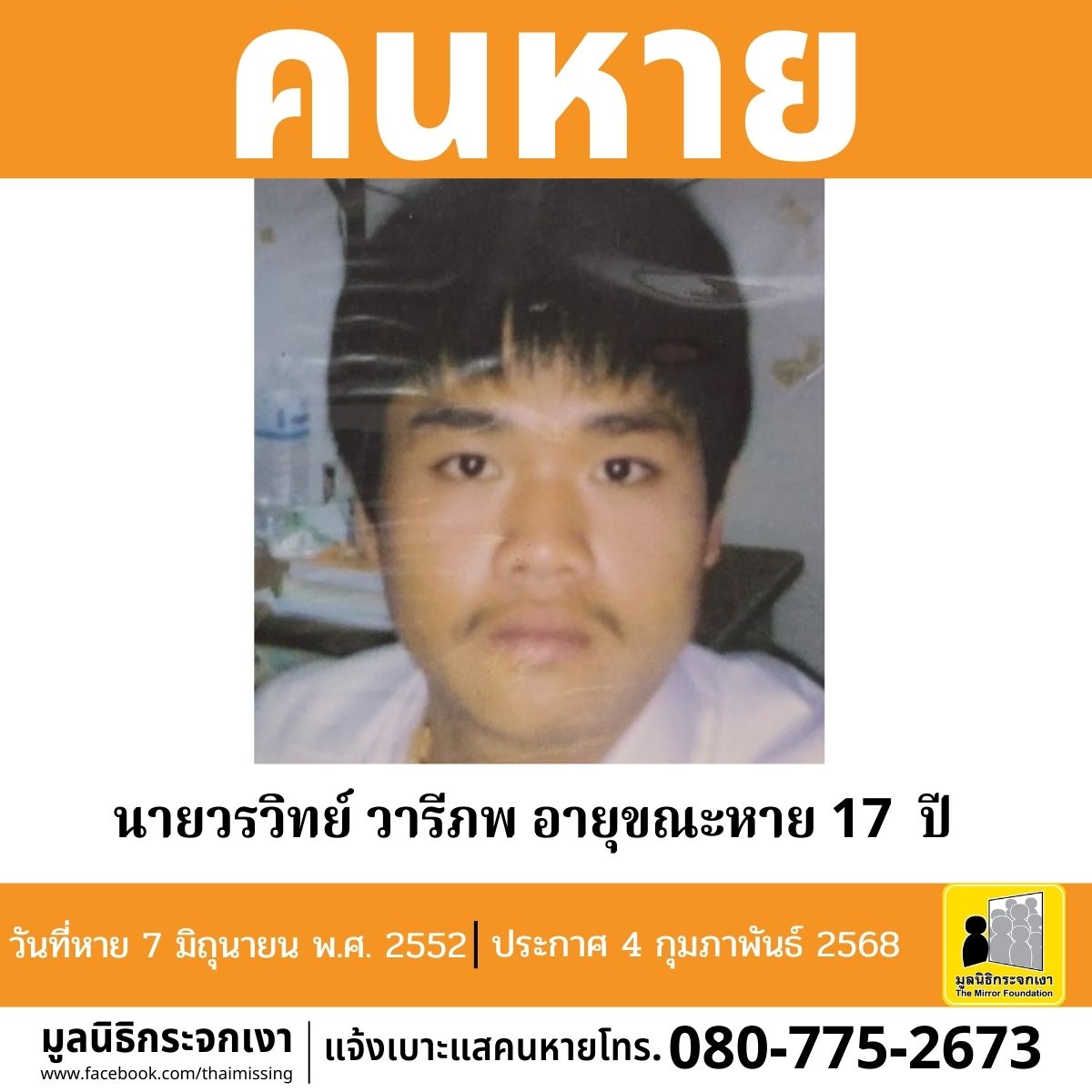 ผู้ใดพบเห็นโปรดแจ้งมูลนิธิกระจกเงา โทร. 080 775 2673