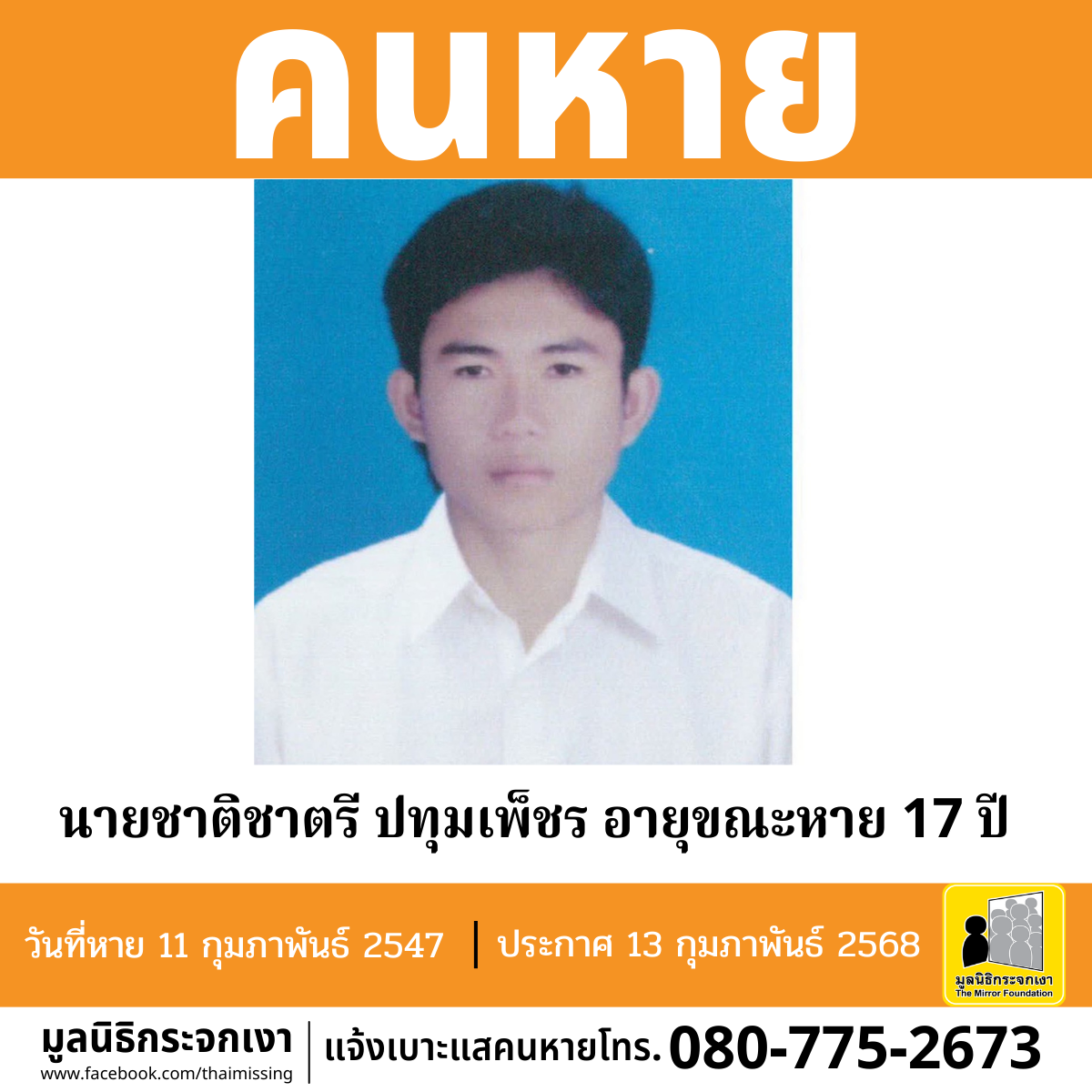 (อายุขณะที่หาย 17 ปี)