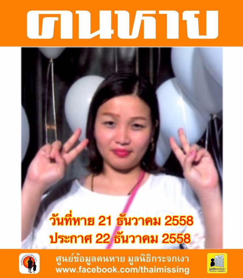 ผู้ใดพบเห็นโปรดแจ้งมูลนิธิกระจกเงา โทร. 095-631-1914