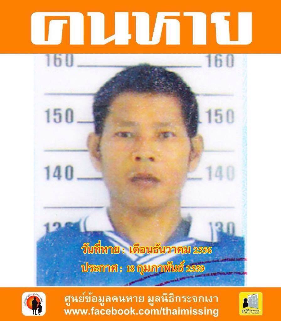 ชื่อคุณสำเริง ไสวทอง หรือ เต่า อายุ 47 ปี รูปร่างท้วม สูง160 ซม. ผิวดำแดง ผมสั้นสีดำแซมขาว หายออกจากบ้านอ.สำโรงใต้ จ.สมุทรปราการ ตั้งแต่เดือนธันวาคม 2556