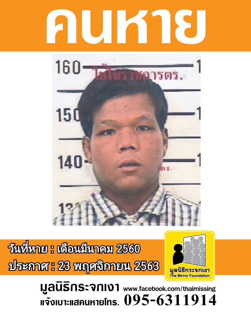 ผู้ใดพบเห็นโปรดแจ้งมูลนิธิกระจกเงา โทร. 095 631 1914