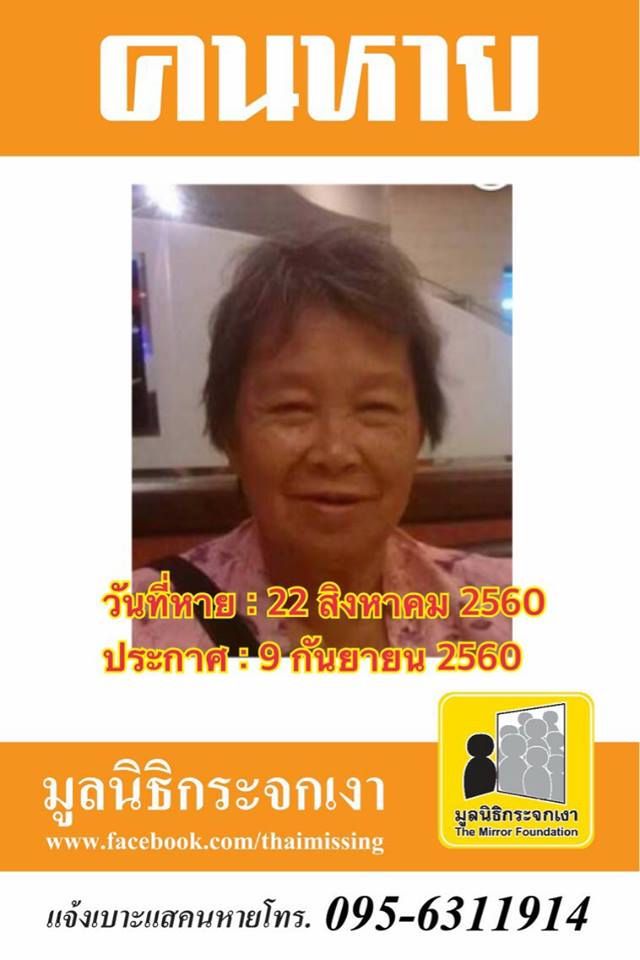 ผู้ใดพบเห็นโปรดแจ้งมูลนิธิกระจกเงา โทร. 095 - 631 - 1914