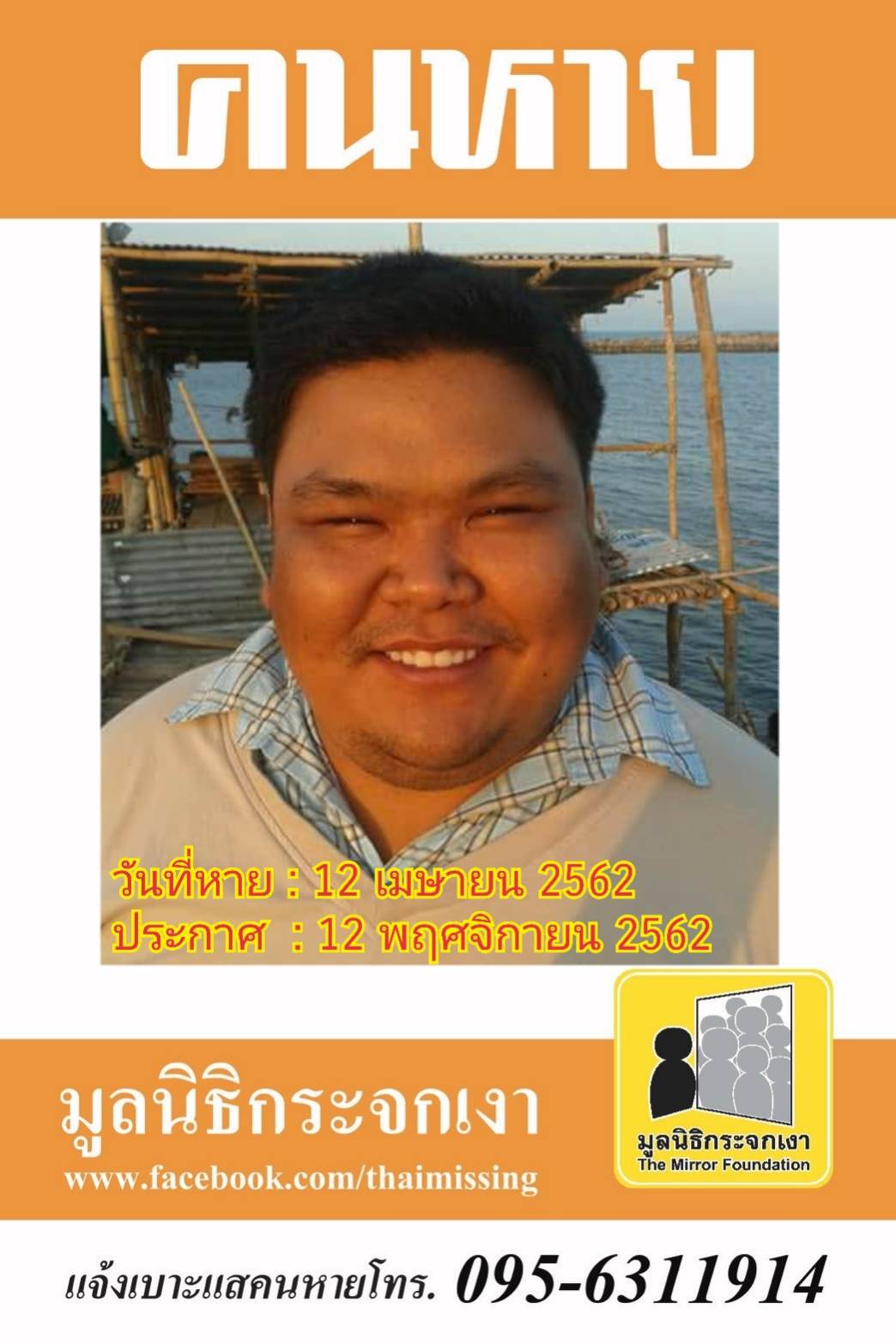 ผู้ใดพบเห็นโปรดแจ้งมูลนิธิกระจกเงา โทร. 095 631 1914