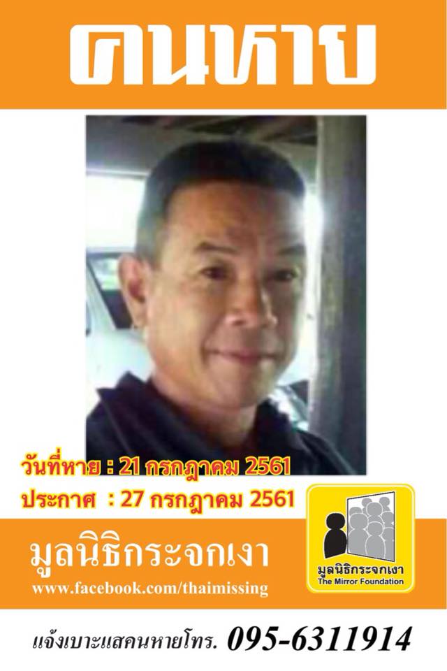 ผู้ใดพบเห็นโปรดแจ้งมูลนิธิกระจกเงา โทร. 095 631 1914