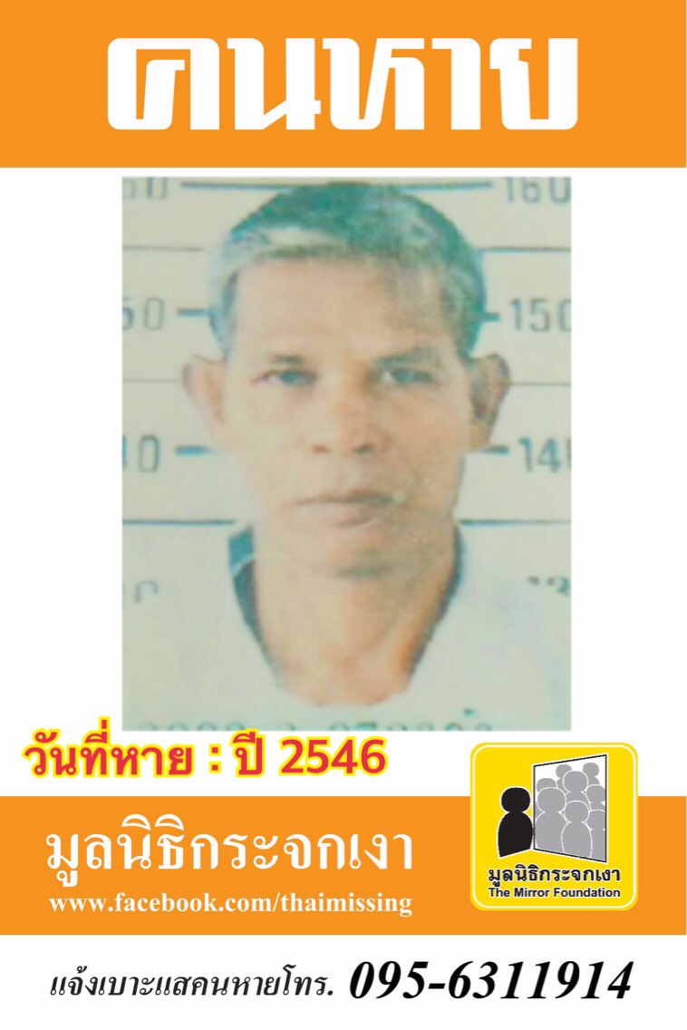 ผู้ใดพบเห็นโปรดแจ้งมูลนิธิกระจกเงา โทร. 095 631 1914