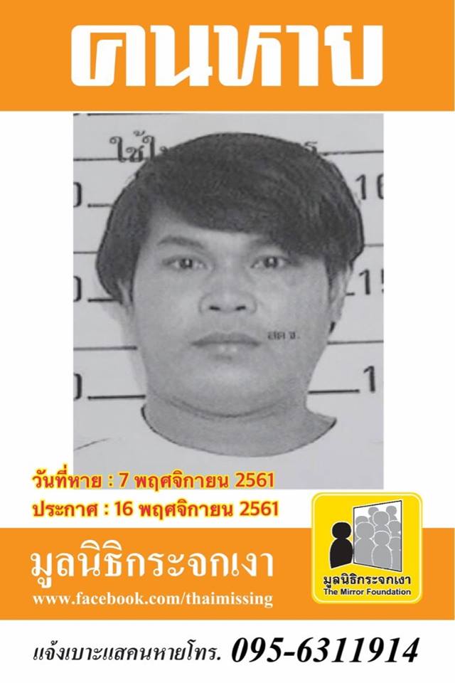 ผู้ใดพบเห็นโปรดแจ้งมูลนิธิกระจกเงา โทร. 095 631 1914