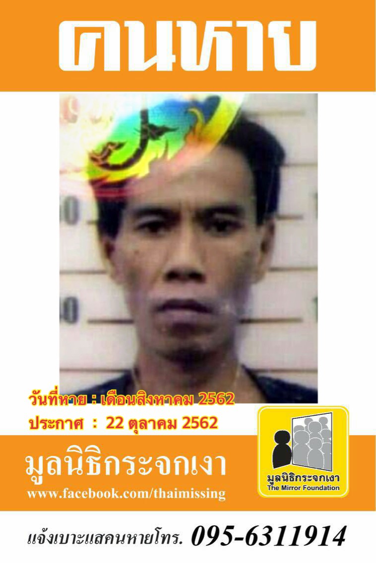 ผู้ใดพบเห็นโปรดแจ้งมูลนิธิกระจกเงา โทร. 095 631 1914