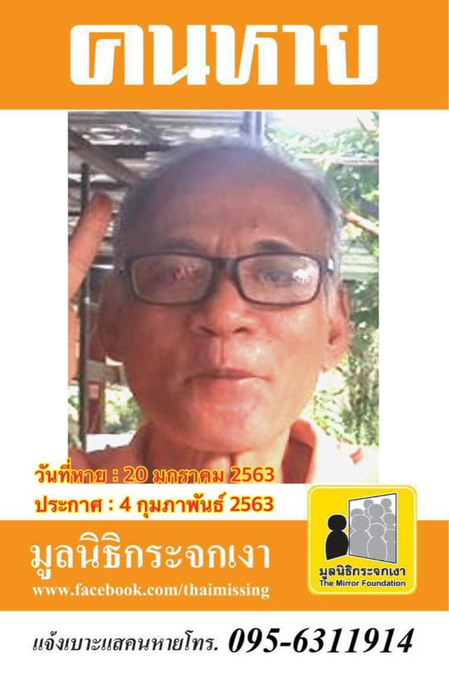 ผู้ใดพบเห็นโปรดแจ้งมูลนิธิกระจกเงา โทร. 095 631 1914
