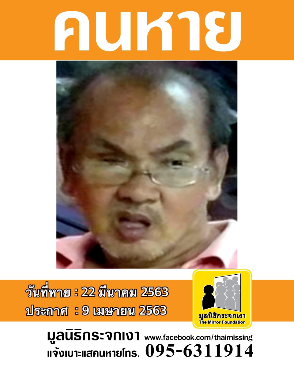 ผู้ใดพบเห็นโปรดแจ้งมูลนิธิกระจกเงา โทร. 095 631 1914