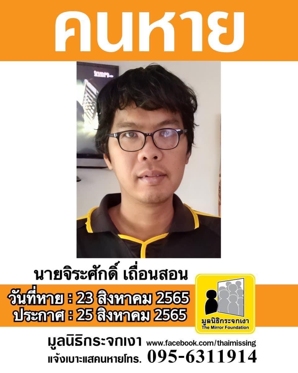 ผู้ใดพบเห็นโปรดแจ้งมูลนิธิกระจกเงา โทร. 095 631 1914