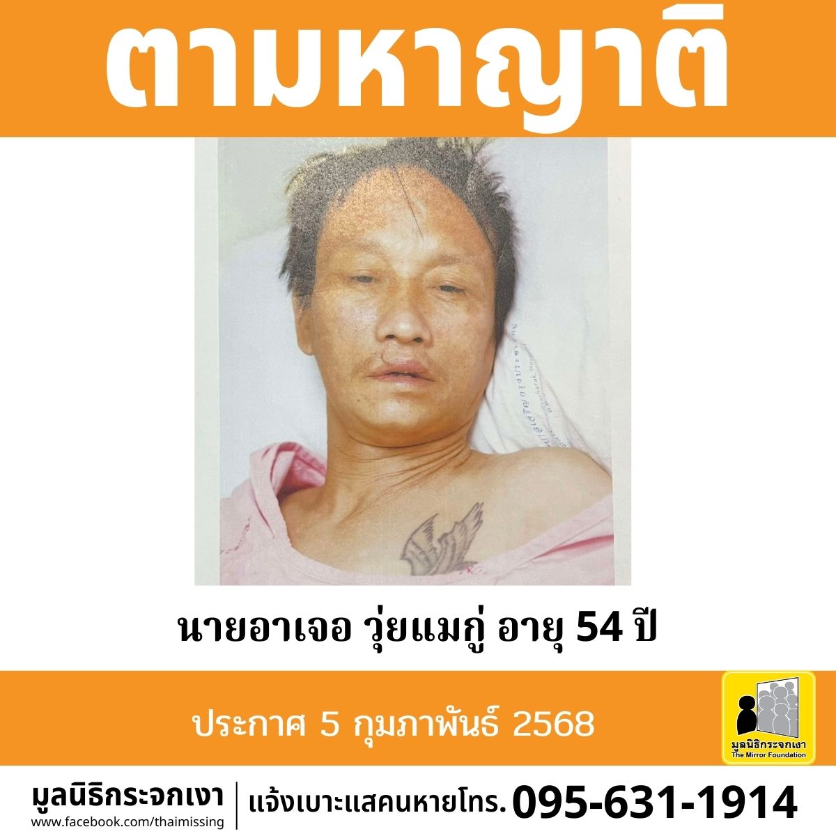 ทั้งนี้หากท่านใดเป็นญาติ หรือรู้จักกับคนในภาพ กรุณาติดต่อ ศูนย์ข้อมูลคนหาย มูลนิธิกระจกเงา โทร 095-631-1914