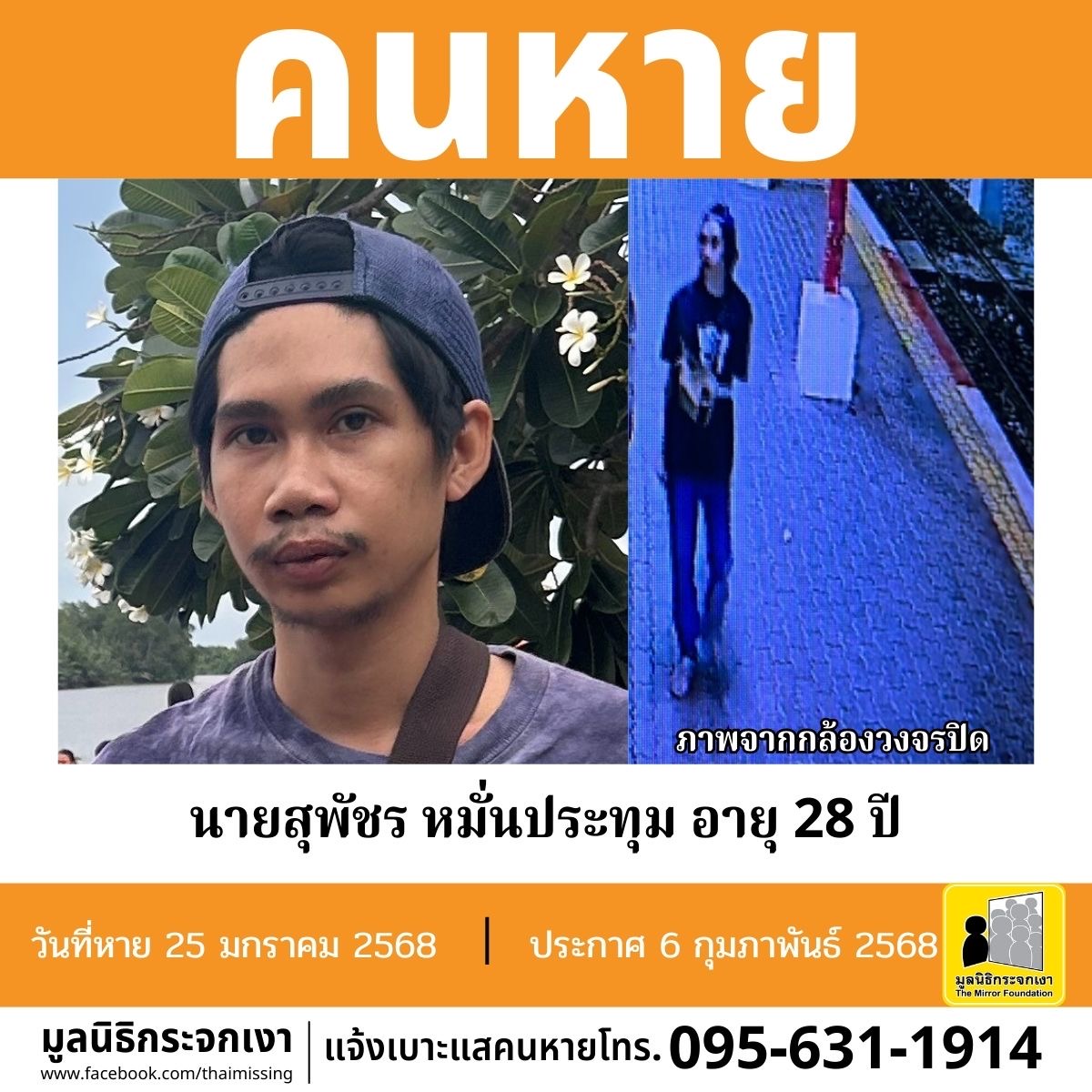ผู้ใดพบเห็นโปรดแจ้งมูลนิธิกระจกเงา โทร. 095 631 1914